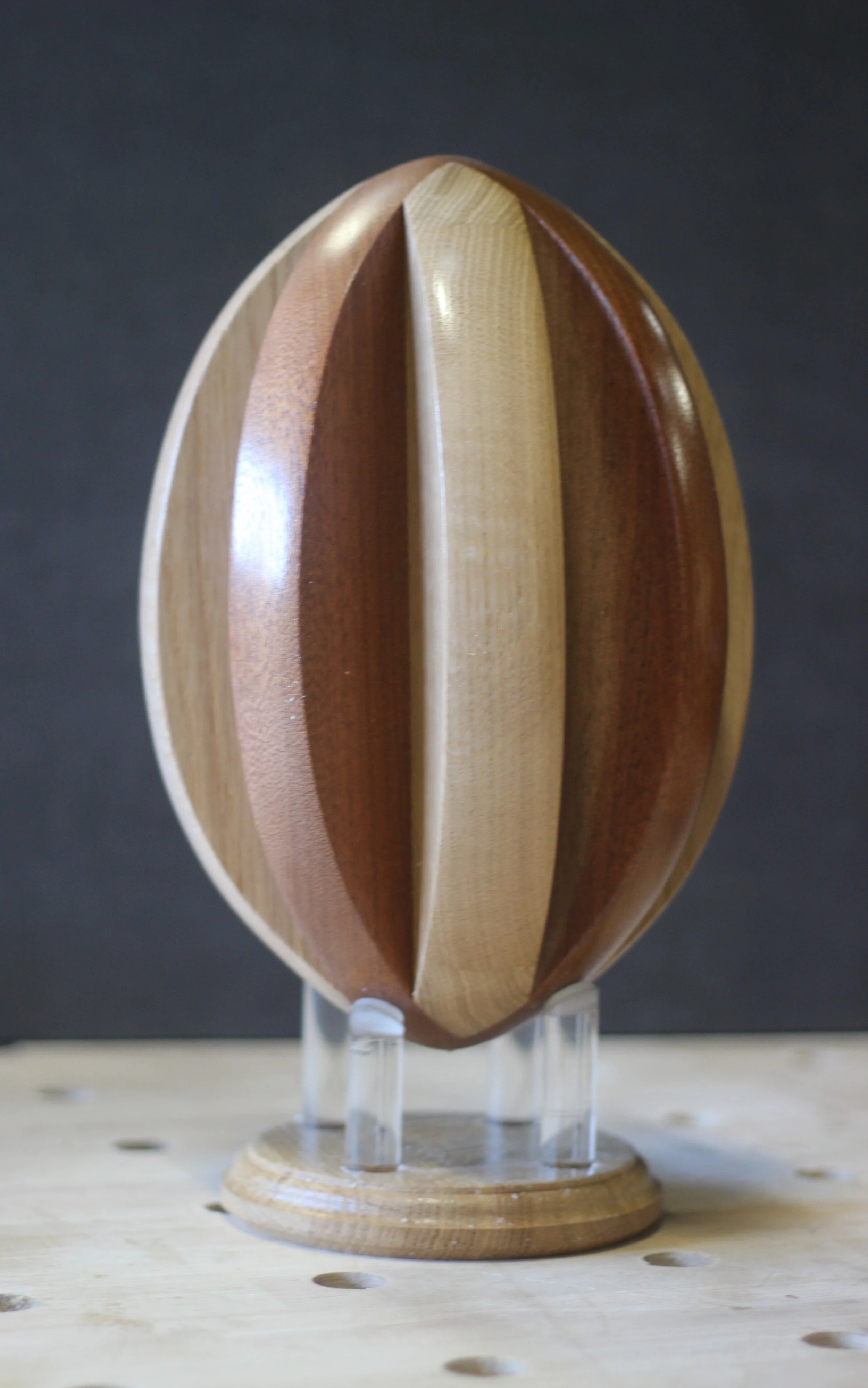 Chaque ballon est entièrement réalisé à la main, dans mon atelier de Portet-sur-Garonne. De la confection des gabarits sur mesure, aux différentes techniques de collage, tout est pensé pour que chaque pièce soit unique. Les essences de bois locales sont sélectionnées avec soin, puis assemblées après une modélisation 3D sur logiciel.