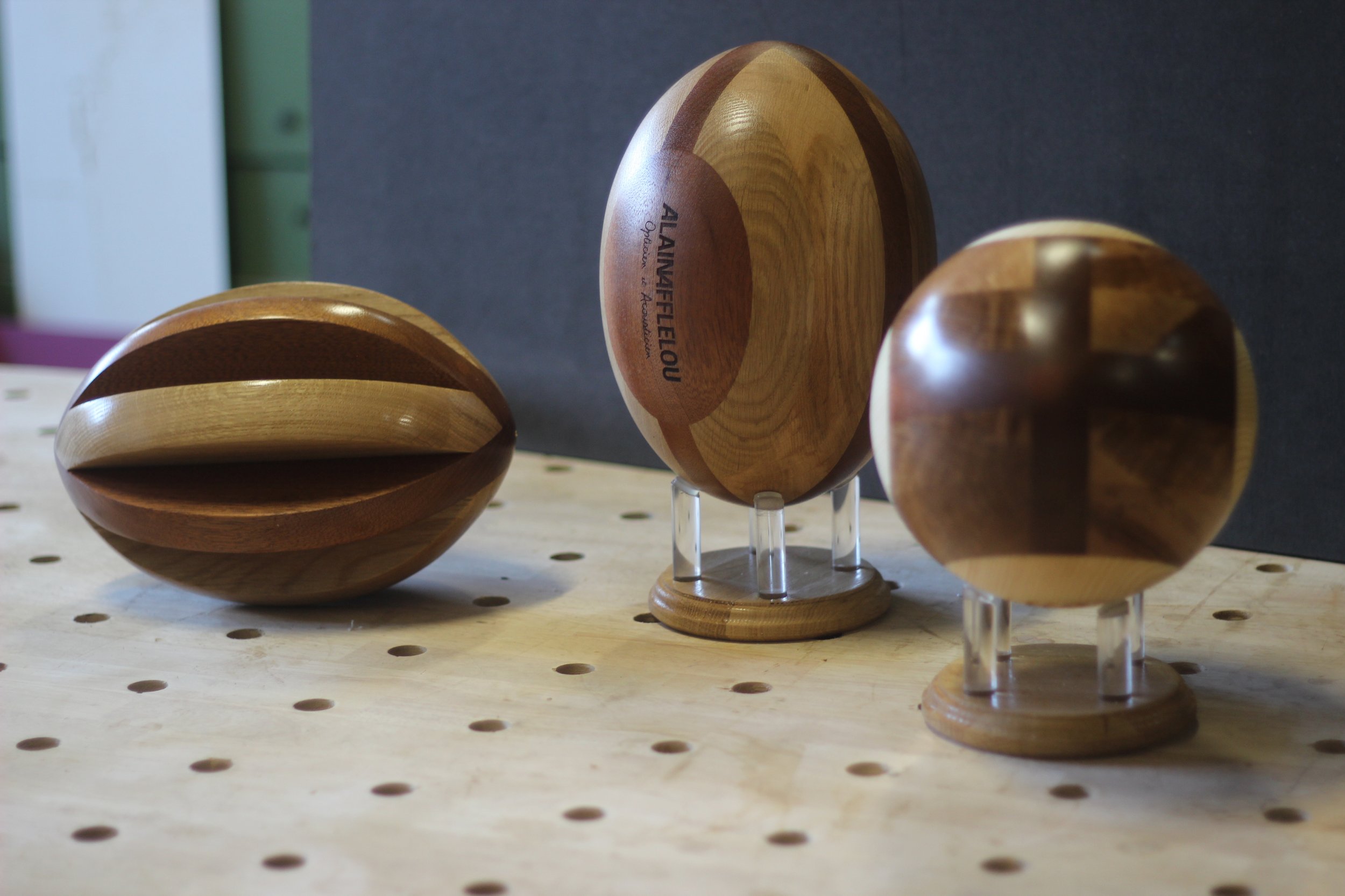 C’est au fil de quelques troisièmes mi-temps mémorables que l’idée a jailli comme une évidence : fabriquer des ballons de rugby en bois.